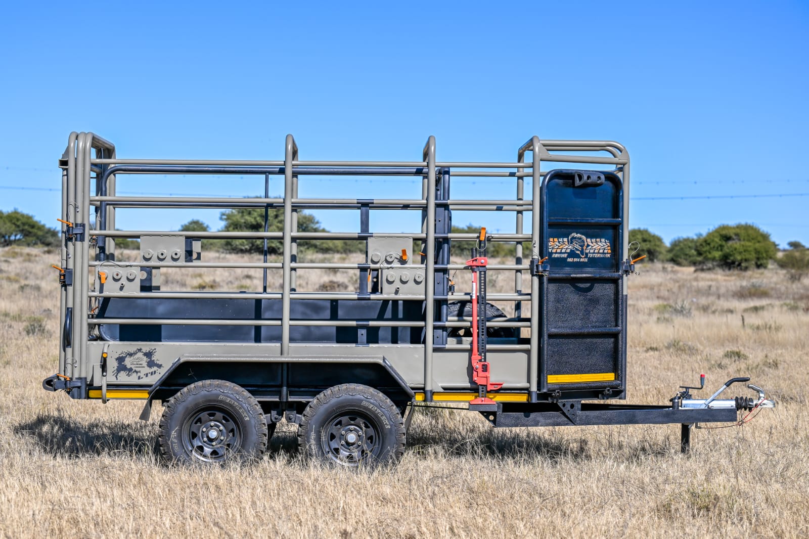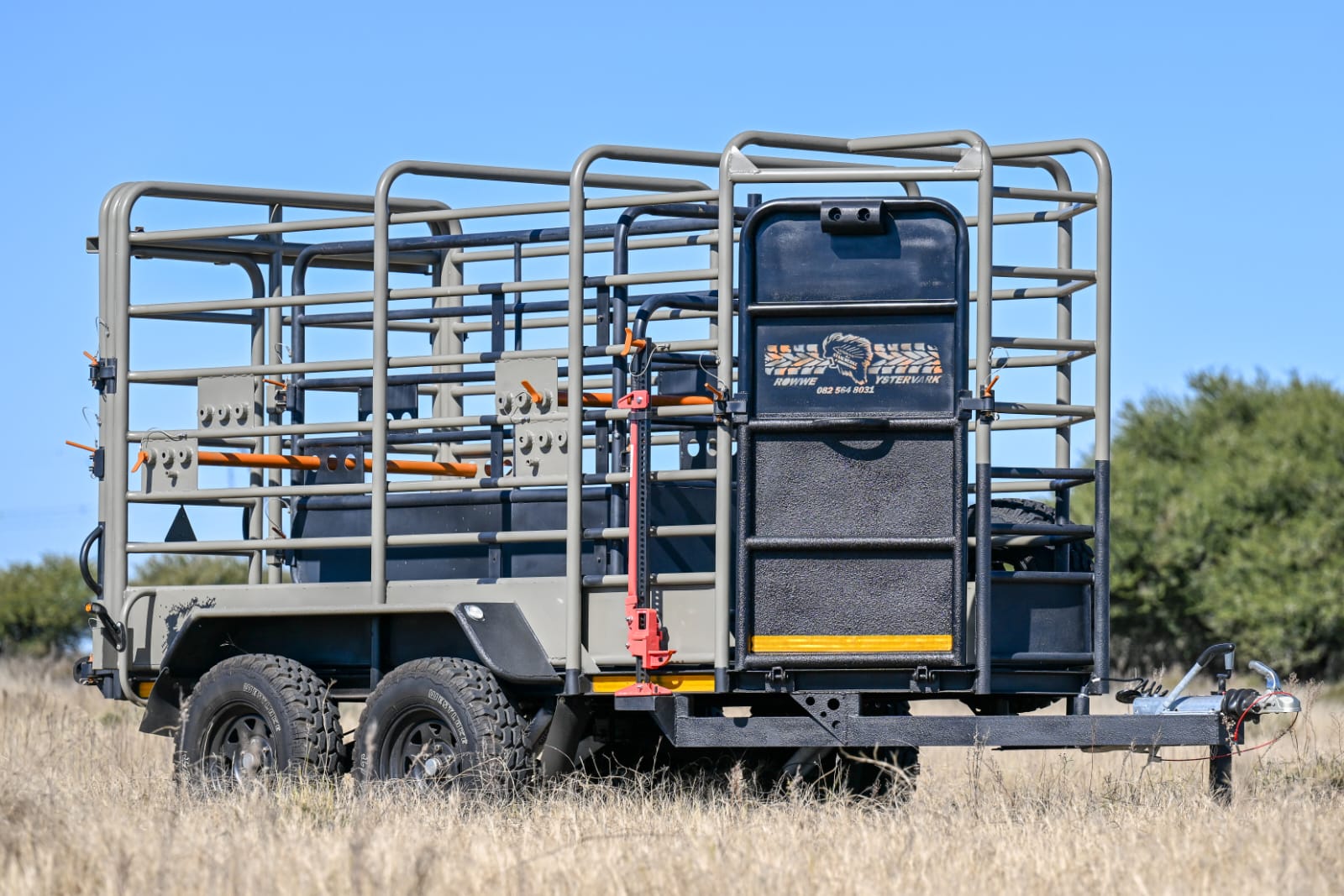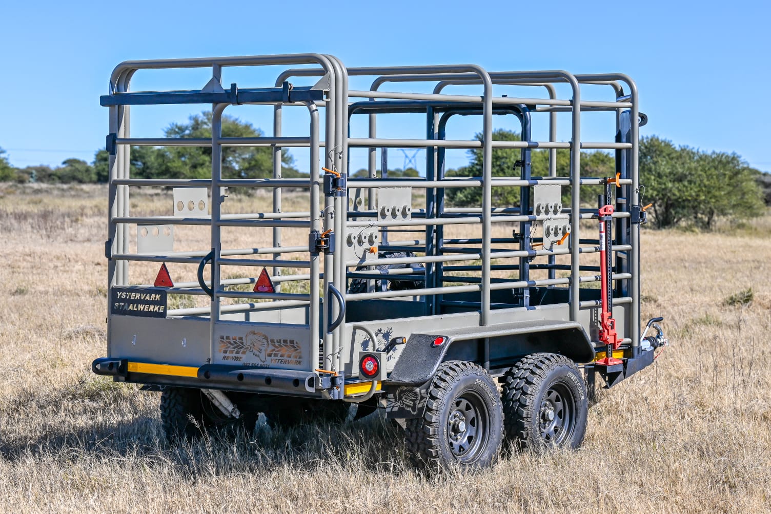 YSTERVARK se ROWWE YSTER sleepwa is ontwerp en gebou met 'n onafhanklike veringstelsel, waar elke wiel onafhanklik beweeg. Rowwe Ystervark kom standaard met vinnige & maklike op- & aflaai plek om alle vee soorte (koeie, kalwers & bulle) te akkommodeer.